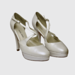 Zapato Marca Sara Bosi, Salón material napa color Bone tacón de 10 cm y plataforma de 2 cm